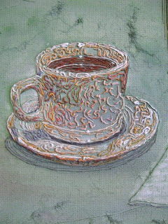 "De combinatie van schilder- en borduurwerk is al vijftien jaar het handelsmerk van Raedecker. Hij begon er ooit mee vanuit een soort van onderdanigheid. "Als beginnend kunstenaar had ik heel sterk het gevoel dat er al zoveel werk gemaakt was, door zoveel goeie kunstenaars. Wie was ik om daar nog aan bij te willen dragen? Ik zocht dus naar een vorm van toestemming om werk te mogen maken. Daarom begon ik met borduren. De moeite die dat kostte, al het handwerk dat ik moest verzetten, verleende me de toestemming om een nieuw werk op de wereld te zetten." en "Raedecker heeft bovendien zijn techniek van het borduren de laatste jaren nog verder verfijnd. In 'Opposite' een bijna leeg schilderij van een bungalow, trekt hij met wollen draden schetsmatige lijnen die eruitzien alsof ze razendsnel met houtskool getekend zijn. Terwijl die er in werkelijkheid natuurlijk met engelengeduld op geborduurd zijn. "Ik vind dat wel een mooie tegenstelling", zegt Raedecker. "Het snelle karakater van de schets tegenover de langzame handeling van het borduren, honderd keer trager dan het oorspronkelijke gebaar".