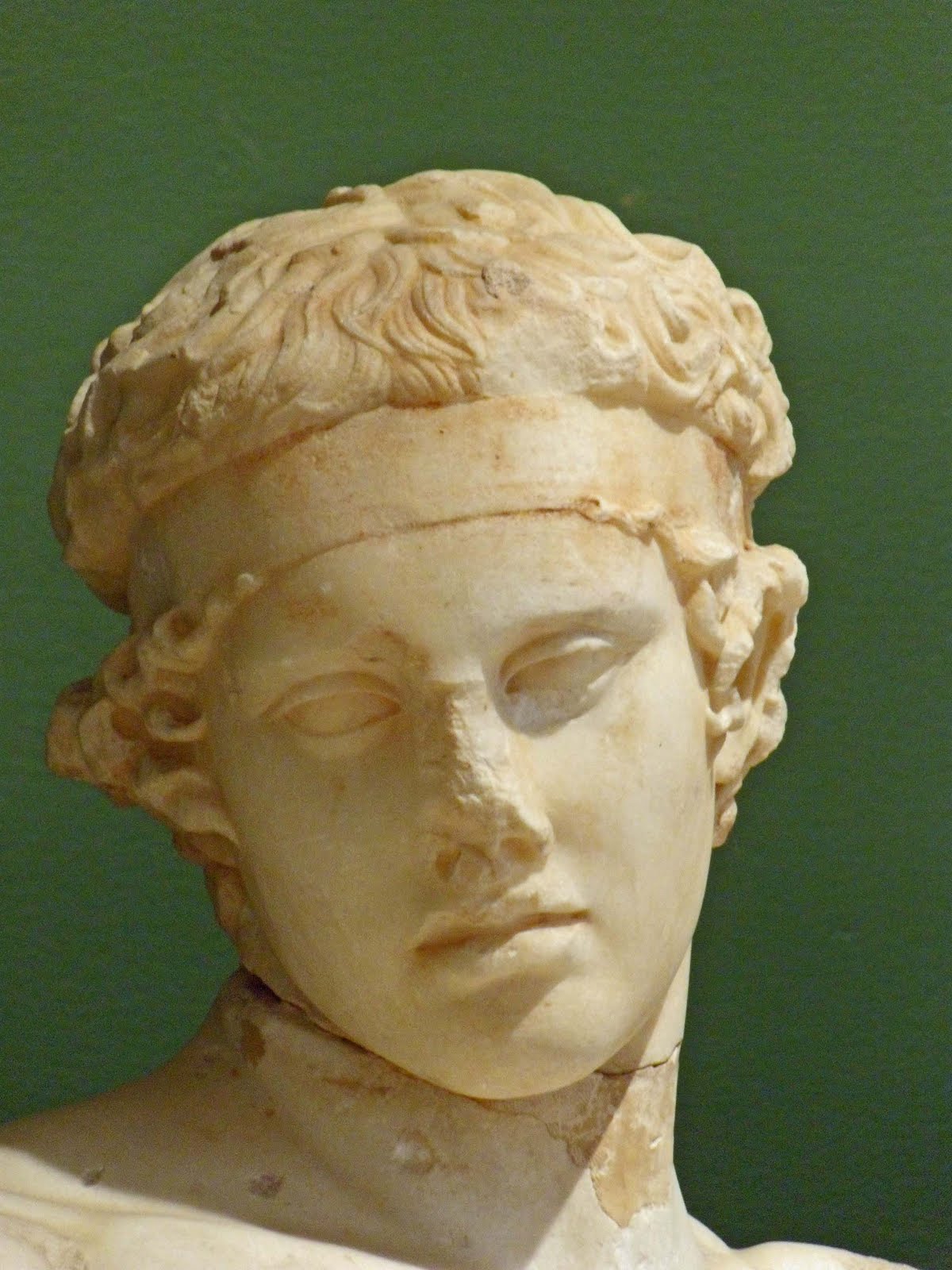 Zagen we dat de Griekse beelden ons een ideaalbeeld voorspiegelden; de Romeinse beelden laten ons de dagelijkse werkelijkheid zien. De portretbuste is de belangrijkste bijdrage van de Romeinen als het gaat om beeldhouwkunst. Er bestonden al portretten ten voeten uit, dat wil zeggen een beeld van voet tot kruin, maar nog geen buste. Een buste houdt in dat de beeldhouwer kop, hals en bovenstuk van het torso (gedeelte van het bovenlichaam) laat zien. De geportretteerde wordt niet geïdealiseerd, maar getoond in al zijn of haar (on)volkomenheden! Hier zien we een portret van keizer Probus. Hij regeerde van 276 tot 282. Het is een man op leeftijd met een lang, een beetje pezig gezicht. Het is een heel karakteristiek hoofd, dat je zou herkennen als je hem op straat tegen kwam. Het realistisch afbeelden van een persoon komt voort uit de traditie van de Romeinen om een portret van was van overledenen te maken. Het waren een soort dodenmaskers.
